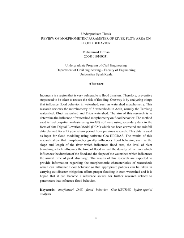 Baca Juga : ANALISIS PARAMETER MORFOMETRI TERHADAP PERILAKU BANJIR PADA DAERAH ALIRAN SUNGAI KRUENG ACEH DENGAN GEOHECRAS (M. Fitrah Amrullah, 2024)
