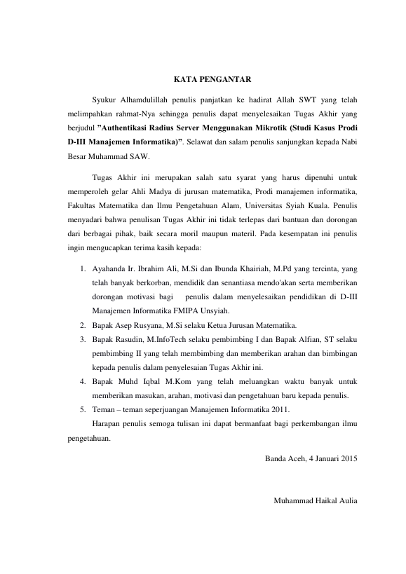 Muhammad Haikal Aulia, AUTHENTIKASI RADIUS SERVER MENGGUNAKAN MIKROTIK (STUDI KASUS PADA PRODI D-III MANAJEMEN INFORMATIKA). Banda Aceh Fakultas Matematika dan Ilmu Pengetahuan Alam,2015