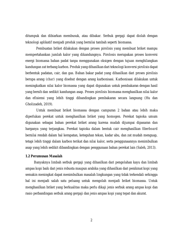 Baca Juga : PEMANFAATAN SERBUK GERGAJI MENJADI BRIKET BIOMASSA DENGAN CAMPURAN AMPAS KOPI MENGGUNAKAN PEREKAT TAPIOKA (CHAIRUL UMAM, 2024)