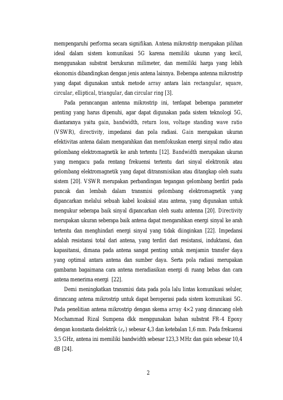 Baca Juga : PERBANDINGAN BANDWIDTH DAN GAIN ANTENA MIKROSTRIP PATCH CIRCULAR DUA ELEMEN DENGAN DAN TANPA DEFECTED GROUND STRUCTURE UNTUK KOMUNIKASI 5G (Maulana Wahri Nauval, 2023)