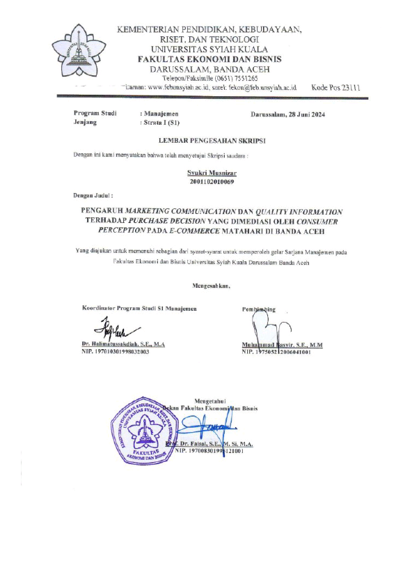 Baca Juga : PENGARUH MARKETING COMMUNICATION DAN QUALITY INFORMATION TERHADAP PURCHASE DECISION YANG DIMEDIASI OLEH CONSUMER PERCEPTION PADA E-COMMERCE MATAHARI DI KOTA BANDA ACEH (SYUKRI MUSNIZAR, 2024)