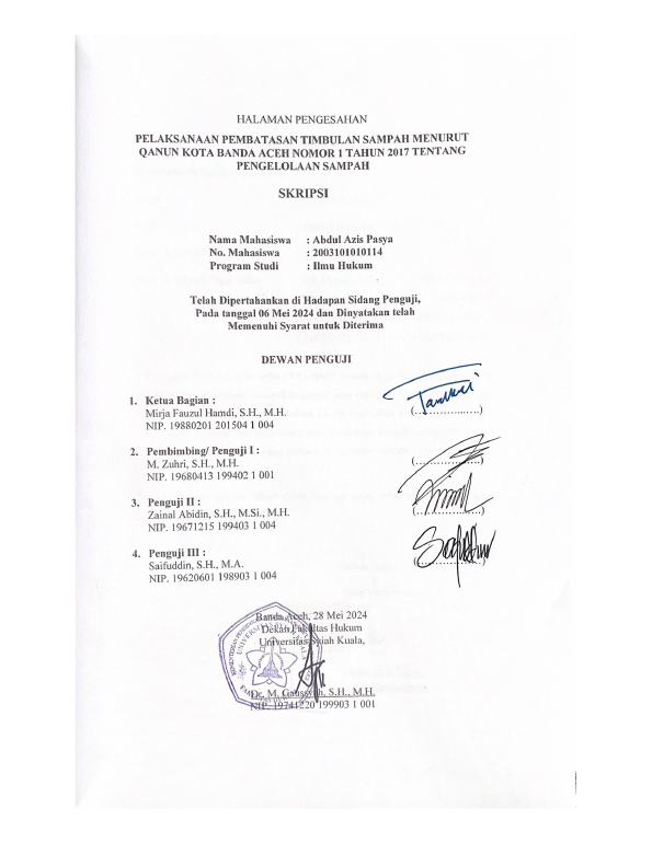 Baca Juga : PENEGAKAN HUKUM TERHADAP PELAKU PEMBAKARAN SAMPAH BERDASARKAN QANUN KOTA BANDA ACEH NOMOR 1 TAHUN 2017 TENTANG PENGELOLAAN SAMPAH (Muhammad Fathan Rifqi, 2025)