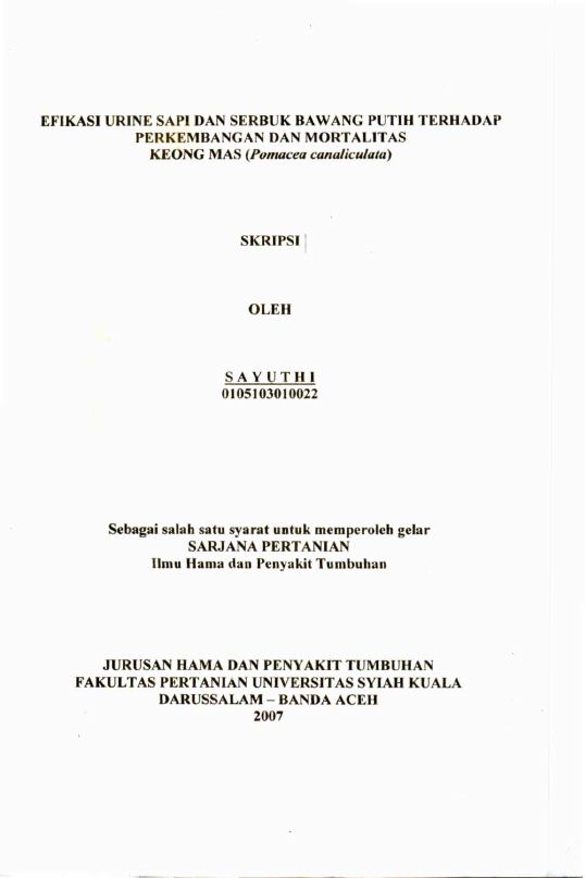 SAYUTHI, JURUSAN HAMA DAN PENYAKIT TUMBUHANRNFAKULTAS PERTANIAN UNIVERSITAS SYIAH KUALARNDARUSSALAM - BANDA ACEH. Banda Aceh Fakultas Pertanian,2007