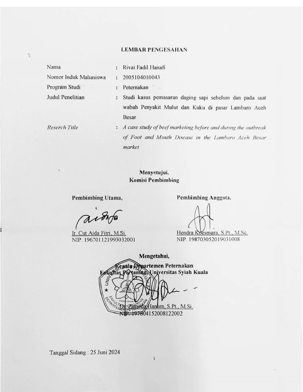 Baca Juga : KESEMPURNAAN PENGELUARAN DARAH DAGING SAPI MEUGANG DI PASAR INDUK LAMBARO KABUPATEN ACEH BESAR (FITRIA ULFA, 2019)