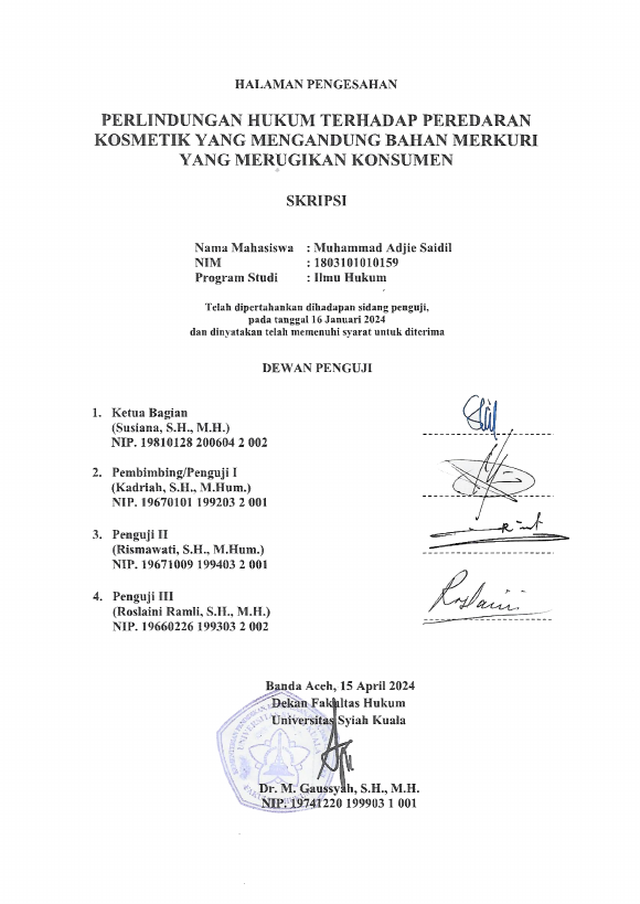 Baca Juga : PERLINDUNGAN HUKUM BAGI KONSUMEN TERHADAP PEREDARAN KOSMETIK YANG MENCANTUMKAN NOMOR IZIN EDAR FIKTIF DI KOTA BANDA ACEH (Yana Indah Pertiwi, 2018)