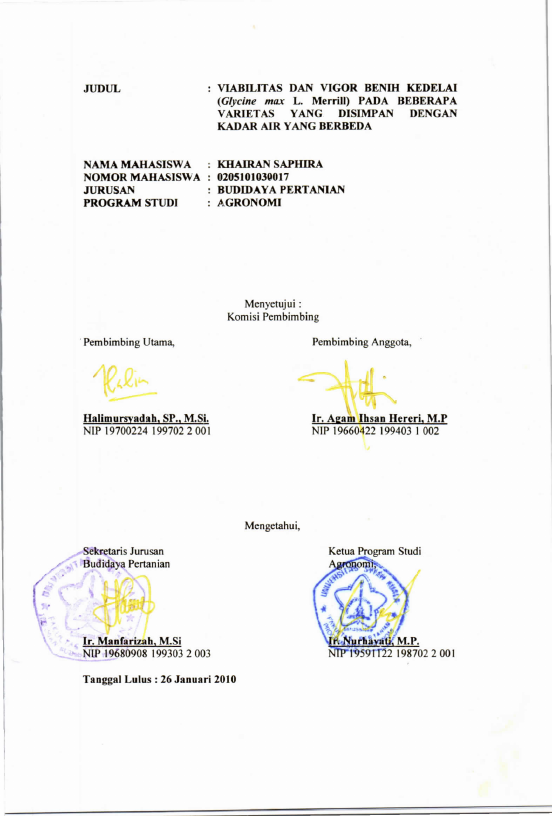Baca Juga : VIABILITAS DAN VIGOR BENIH KEDELAI (GLYCINE MAX L. MERRILL) PADA BEBERAPA VARIETAS YANG DISIMPAN DENGANRNKADAR AIR YANG BERBEDA (Khairan Saphira, 2024)