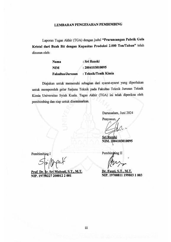 Baca Juga : PRARANCANGAN PABRIK GULA KRISTAL DARI BUAH BIT DENGAN KAPASITAS PRODUKSI 2.000 TON/TAHUN (SRI REZEKI, 2024)