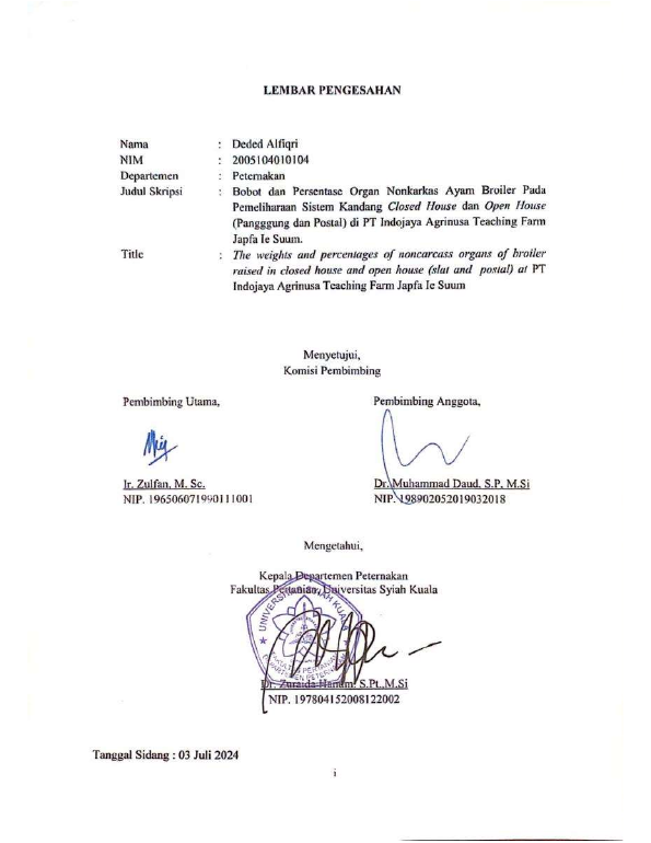 Baca Juga : PERBANDINGAN PERFORMA AYAM BROILER PADA PEMELIHARAAN SISTEM CLOSED HOUSE, OPEN HOUSE POSTAL DAN OPEN HOUSE PANGGUNG DI UNIVERSITY TEACHING FARM UNIVERSITAS SYIAH KUALA IE SUUM, ACEH BESAR (Fuji Anjeli, 2024)