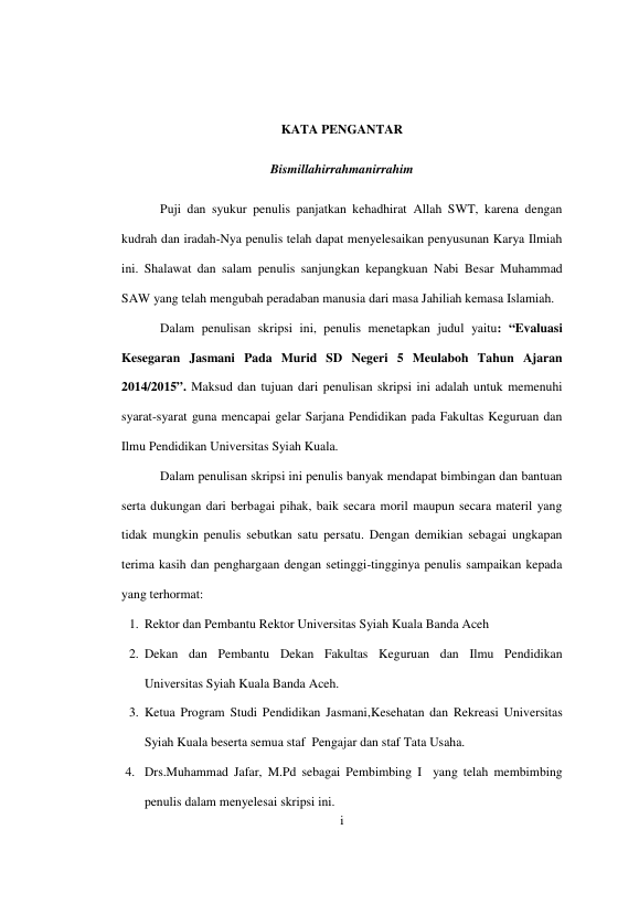 Razali, EVALUASI KESEGARAN JASMANI PADA MURID SD NEGERI 5 MEULABOH TAHUN AJARAN 2014/2015. Banda Aceh Fakultas Keguruan dan Ilmu Pendidikan,2014