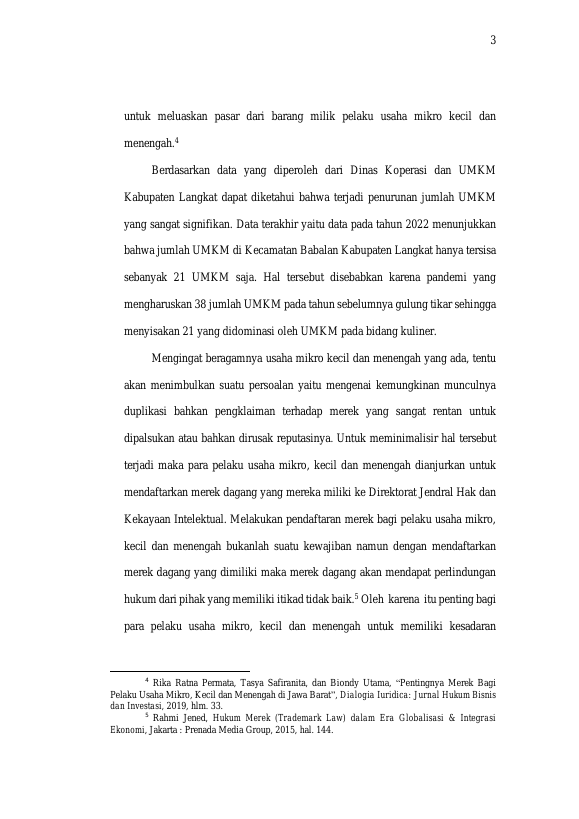 Iemelia Lusiana, KESADARAN HUKUM PELAKU USAHA MIKRO KECIL DAN MENENGAH TERHADAP PENDAFTARAN MEREK DAGANG (SUATU PENELITIAN DI KECAMATAN BABALAN KABUPATEN LANGKAT PROVINSI SUMATERA UTARA). Banda Aceh Fakultas Hukum,2024