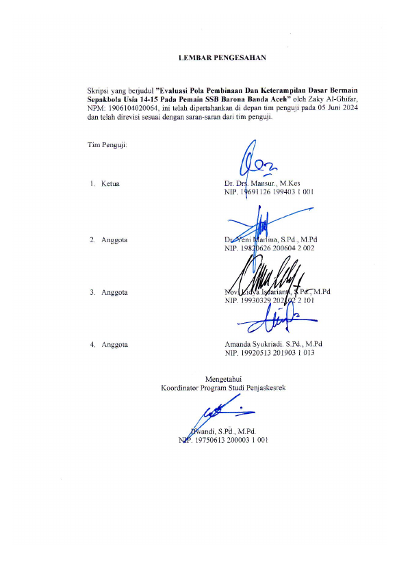Baca Juga : EVALUASI POLA PEMBINAAN DAN KETERAMPILAN DASAR BERMAIN SEPAKBOLA USIA 14-15 PADA PEMAIN SSB BARONA BANDA ACEH TAHUN 2023 (ZAKY AL-GHIFARI, 2024)