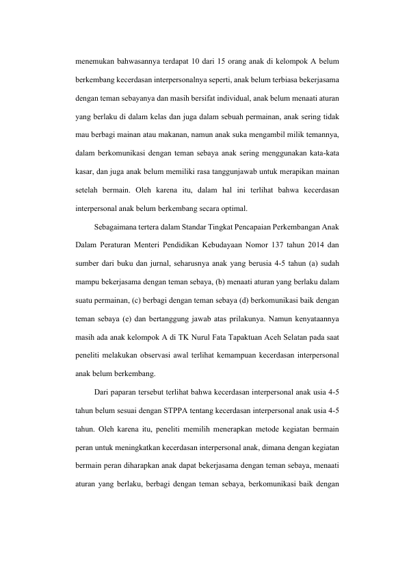 Baca Juga : PERKEMBANGAN KECERDASAN INTERPERSONAL ANAK MELALUI METODE MAIN PERAN DI PAUD NURUL IMAN BANDA ACEH (Tasya Utari Putri, 2019)