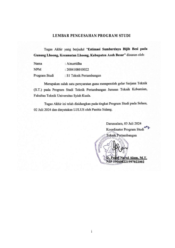 Baca Juga : ESTIMASI SUMBERDAYA BIJIH BESI PADA GUNUNG LHOONG, KECAMATAN LHOONG, KABUPATEN ACEH BESAR (AINURRIDHA, 2024)