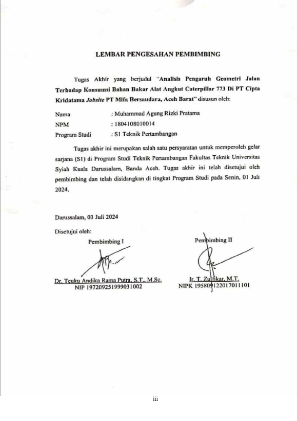 Baca Juga : ANALISI KEMIRINGAN JALAN TERHADAP KONSUMSI BAHAN BAKAR PADA KEGIATAN PENGUPASAN OVERBURDEN DI PT. MIFA BERSAUDARA, MEULABOH, ACEH BARAT (Tiara Mentari Nafsya, 2017)