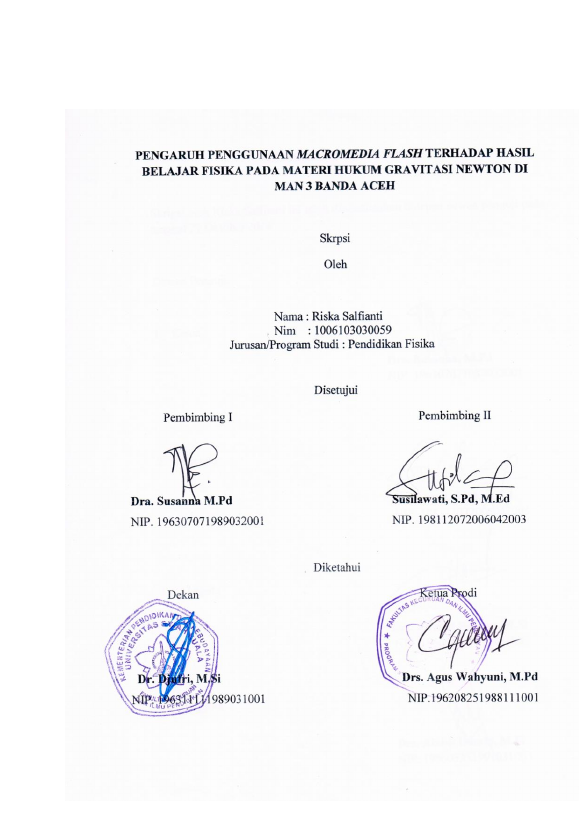 Riska Salfianti, PENGARUH PENGGUNAAN MACROMEDIA FLASH TERHADAP HASIL BELAJAR FISIKA PADA MATERI HUKUM GRAVITASI NEWTON DI MAN 3 BANDA ACEH. Banda Aceh Fakultas Keguruan dan Ilmu Pendidikan,2014