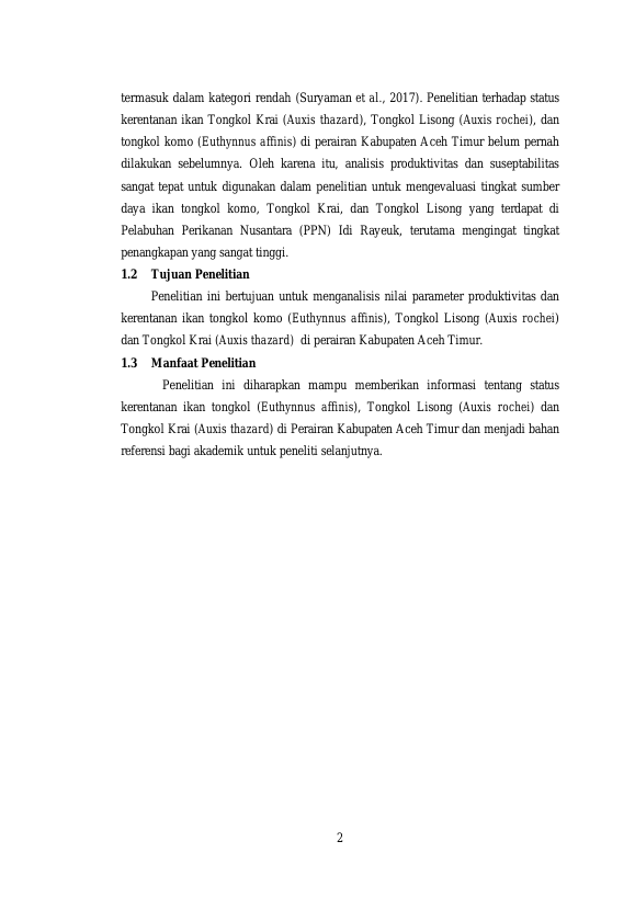 Baca Juga : STATUS KERENTANA IKAN TONGKOL KOMO (EUTHYNNUS AFFINIS), TONGKOL LISONG (AUXIS ROCHEI) DAN TONGKOL KRAI (AUXIS THAZARD) DI PERAIRAN KABUPATEN ACEH TIMUR (LATHIFURRAHMAN, 2024)