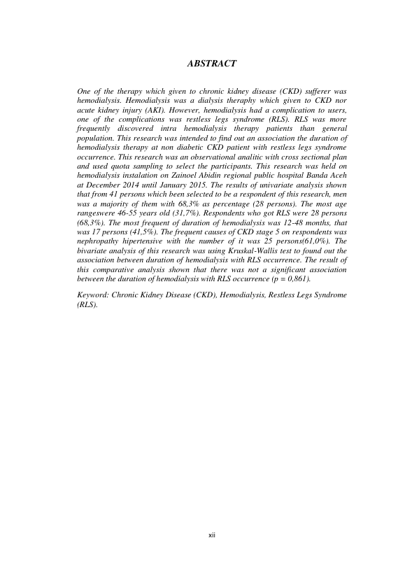 Baca Juga : HUBUNGAN KADAR FERITIN SERUM, SERUM IRON DAN TOTAL IRON BINDING CAPACITY DENGAN KEJADIAN RESTLESS LEGS SYNDROME PADA PENDERITA PENYAKIT GINJAL KRONIK YANG MENJALANI HEMODIALISIS (Diana Erlita, 2016)
