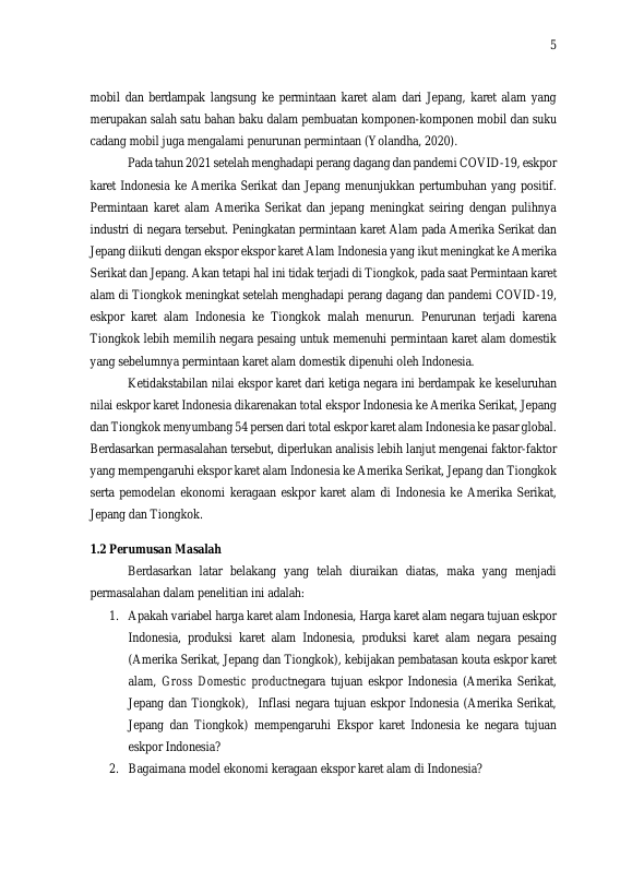 Baca Juga : ANALISIS DAYA SAING EKSPOR KARET ALAM INDONESIA DAN THAILAND DI PASAR INTERNASIONAL (MITA REZEKINA UTAMI, 2020)