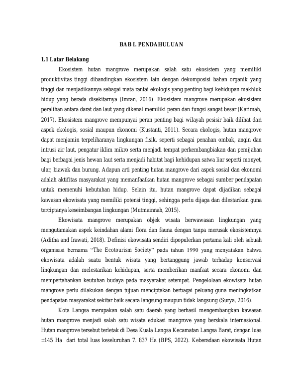 Baca Juga : PERSEPSI MASYARAKAT TERHADAP EKOSISTEM HUTAN MANGROVE DI KAWASAN KUALA LANGSA, KECAMATAN LANGSA BARAT KOTA LANGSA. (Laksmi Puja Sukma, 2018)