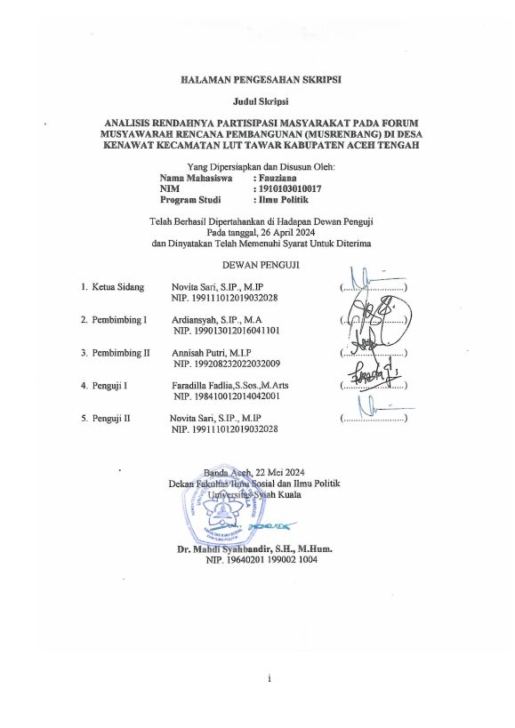 Baca Juga : PEMBANGUNAN POLITIK MASYARAKAT ACEH TENGAH DALAM MENCAPAI KESEJAHTERAAN (STUDI KASUS PROSES PENERAPAN MUSRENBANG DALAM PERENCANAAN PEMBANGUNAN) (SIRAJUL MA`HADI, 2018)