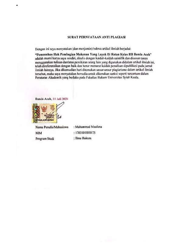 Baca Juga : PEMENUHAN HAK-HAK DASAR NARAPIDANA PADA LEMBAGA PEMASYARAKATAN (KAJIAN TERHADAP PELAYANAN KESEHATAN DAN KONSUMSI DI LAPAS BANDA ACEH DAN RUTAN JANTHO) (RIYAN FIRMANSYAH, 2019)