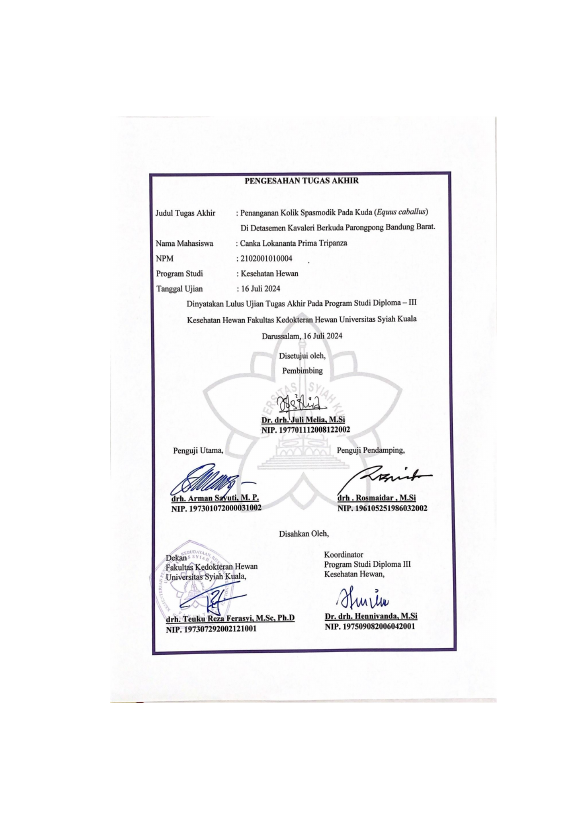 Baca Juga : PEMERIKSAAN KEBERADAAN PARASIT NEMATODA GASTROINTESTINAL PADA KUDA (EQUUS CABALLUS) DI ACEH TENGAH (YOLLANA ASRI, 2019)
