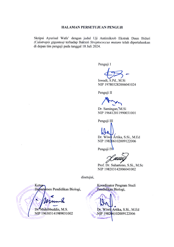 Baca Juga : AKTIVITAS ANTIBAKTERI EKSTRAK ETANOL 70% DAUN BIDURI (CALOTROPIS GIGANTEA) TERHADAP AGGREGATIBACTER ACTINOMYCETEMCOMITANS ATCC 29523 (MAYA PUTRI SINDA, 2019)