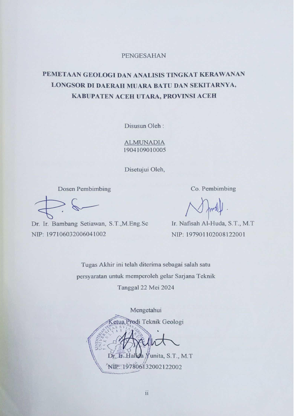 Baca Juga : PEMETAAN GEOLOGI DAN ANALISIS ZONA KERAWANAN LONGSOR DI DAERAH RANTAU DAN SEKITARNYA, KABUPATEN ACEH TAMIANG, PROVINSI ACEH (Kiki Arinda, 2024)