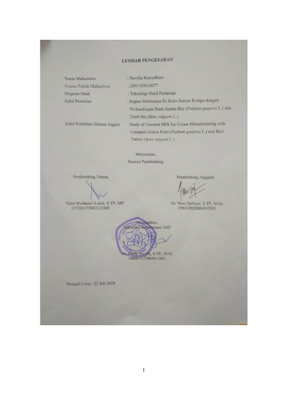 Baca Juga : KAJIAN PEMBUATAN ES KRIM SANTAN KELAPA DENGAN PERBANDINGAN BUAH JAMBU BIJI (PSIDIUM GUAJAVA L.) DAN UMBI BIT (BETA VULGARIS L.) (NOVILIA RAMADHANI, 2024)