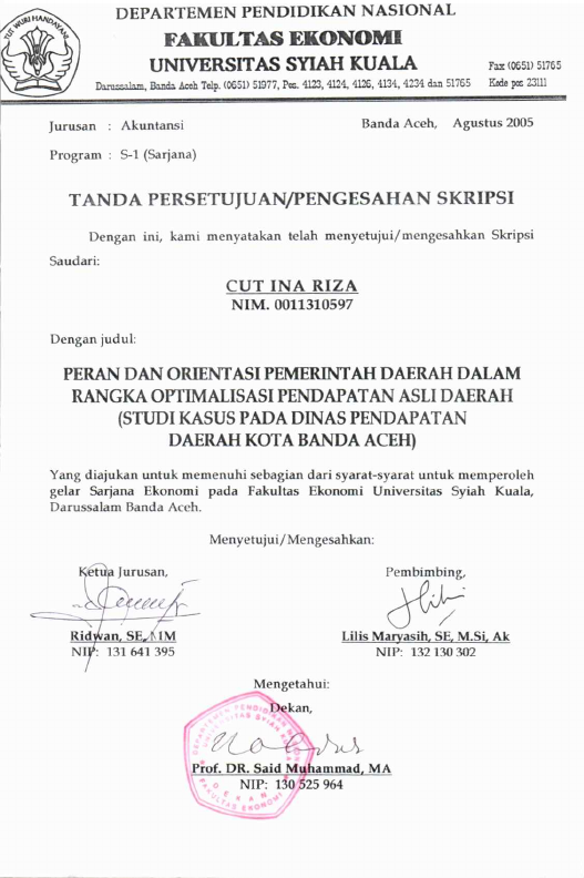 Baca Juga : ANALISIS EFEKTIVITAS PENDAPATAN ASLI DAERAH DAN TINGKAT KEMANDIRIAN DAERAH DI PEMERINTAH ACEH TAHUN 2006- 2010 (STUDI KASUS PADA PEMERINTAH ACEH) (savira noravita, 2013)