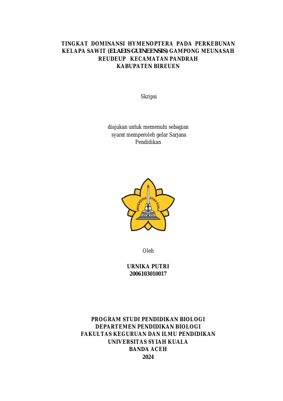 Baca Juga : TINGKAT DOMINANSI HYMENOPTERA PADA PERKEBUNAN KELAPA SAWIT (ELAEIS GUINEENSIS) GAMPONG MEUNASAH REUDEUP KECAMATAN PANDRAH KABUPATEN BIREUEN (URNIKA PUTRI, 2024)