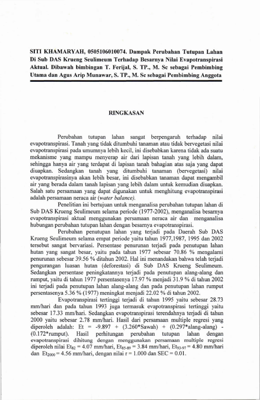 Baca Juga : ANALISIS TUTUPAN LAHAN KAWASAN HUTAN PADA DAERAH ALIRAN SUNGAI KRUENG ACEH PERIODE TAHUN 2001-2009 (Mahyuddin, 2025)