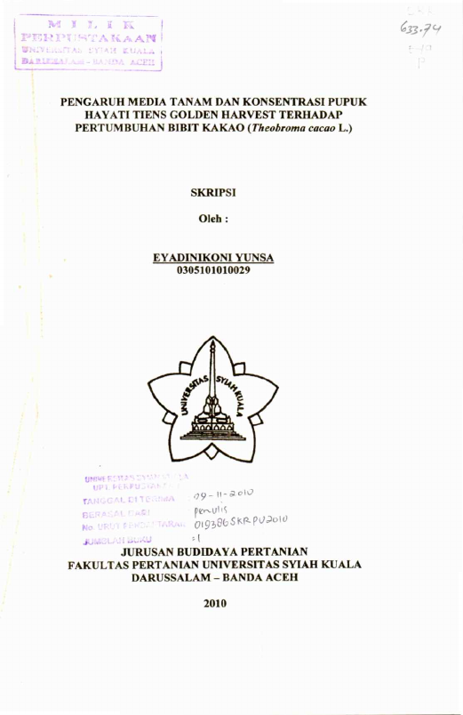 Baca Juga : PENGARUH MEDIA TUMBUH DAN PUPUK ORGANIK CAIR NASA TERHADAP PERTUMBUHAN BIBIT KAKAO (THEOBROMA CACAO L.) (Sofyan Noza, 2022)