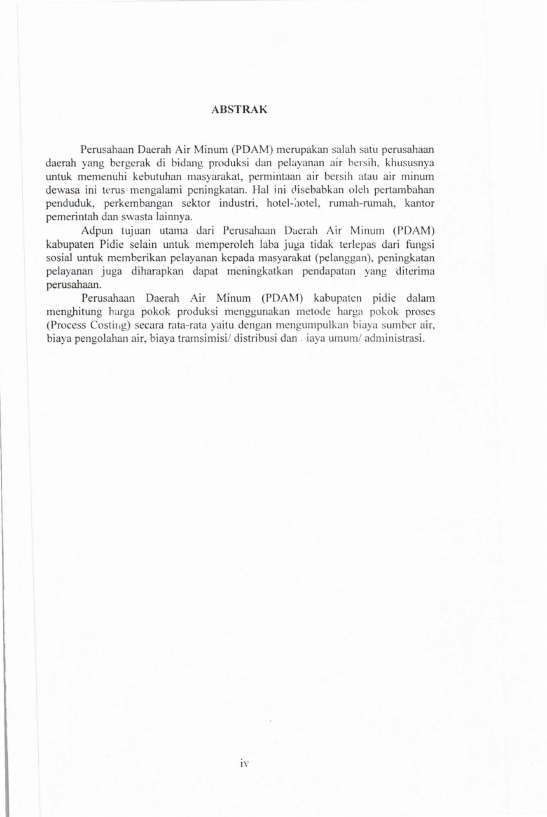 Anita Sari, ANALISIS PERHITUNGAN HARGA POKOK PRODUKSI PADA PERUSAHAAN DAERAH AIR MINUM (PDAM) KABUPATEN PIDIE. Banda Aceh Fakultas Ekonomi,
