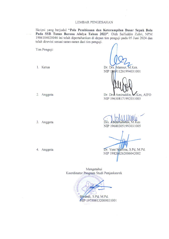 Baca Juga : EVALUASI POLA PEMBINAAN DAN KETERAMPILAN DASAR BERMAIN SEPAKBOLA USIA 14-15 PADA PEMAIN SSB BARONA BANDA ACEH TAHUN 2023 (ZAKY AL-GHIFARI, 2024)