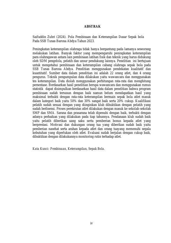 Saifuddin Zuhri, POLA PEMBINAAN DAN KETERAMPILAN DASAR SEPAK BOLA PADA SSB TUNAS BARONA ABDYA TAHUN 2023. Banda Aceh Fakultas KIP Jasmani Kesehatan dan Rekreasi,2024