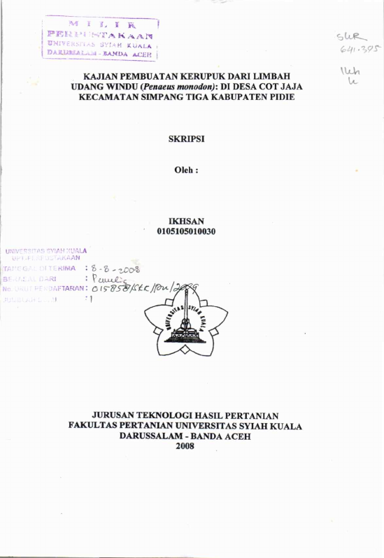 Baca Juga : ANALISIS PERBANDINGAN PENDAPATAN PETANI TAMBAK UDANG WINDU (PENAEUS MONODON) SEBELUM DAN SESUDAH TSUNAMI DI DESA LAM NGA KECAMATAN MESJID RAYA KABUPATEN ACEH BESAR (Wirza Dini Hera, 2020)