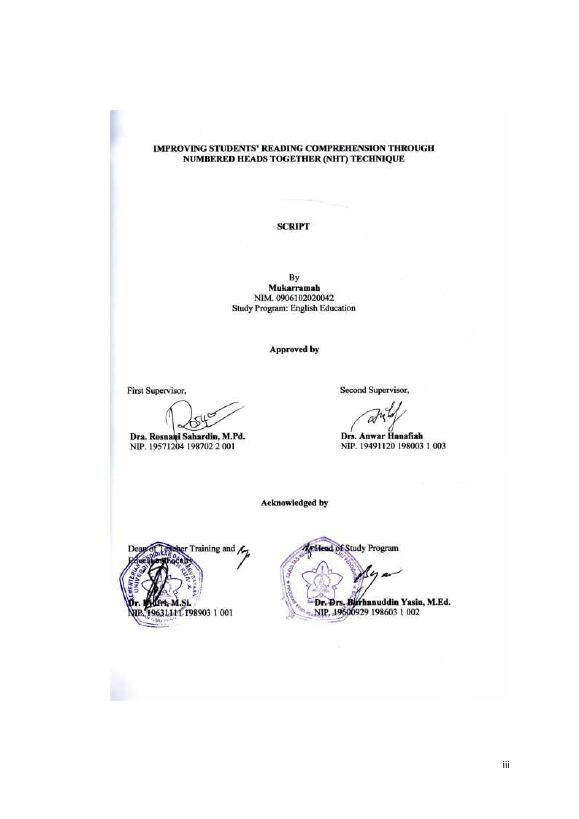 Baca Juga : THE APPLICATION OF NUMBERED HEADS TOGETHER TECHNIQUE IN TEACHING READING FOR JUNIOR HIGH SCHOOL (Muliana, 2021)