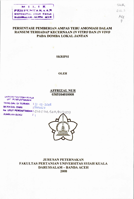 Baca Juga : EFEK PERSENTASE PEMBERIAN AMPAS TEBU AMONIASI PADA RANSUM TERHADAP KECERNAAN IN VIVO DOMBA JANTAN LOKAL (Sri Wahyuni Mulia, 2024)