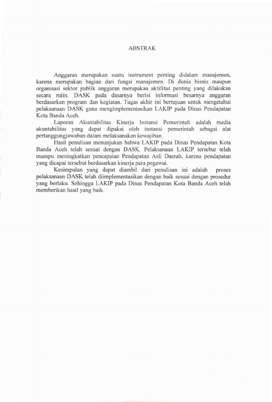 Meri Elfiasari. L, ANALISA PELAKSANAAN DASK GUNA MENGIMPLEMENTASIKAN LAKIP PADA DINAS PENDAPATAN KOTA BANDA ACEH. Banda Aceh Fakultas Ekonomi,2007