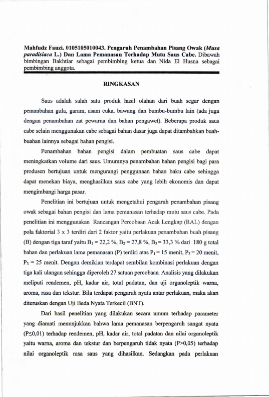 Mahfudz Fauzi, PENGARUH PENAMBAHAN PISANG OWAK (MUSA PARADISIACA L) DAN LAMA PEMANASAN TERHADAP MUTU SAUS CABE. Banda Aceh Fakultas Pertanian,2008
