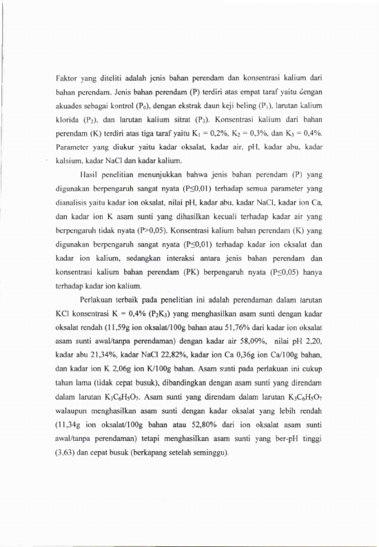Tuti Fajriyani, PENURUNAN KADAR OKSALAT ASAM SUNTI DENGAN PERENDAMAN DALAM EKSTRAK DAUN KEJI BELING, LARUTAN KALIUM KLORIDA (KCI), DAN KALIUM SITRAT (K3C6H5O7). Banda Aceh Fakultas Pertanian,2005