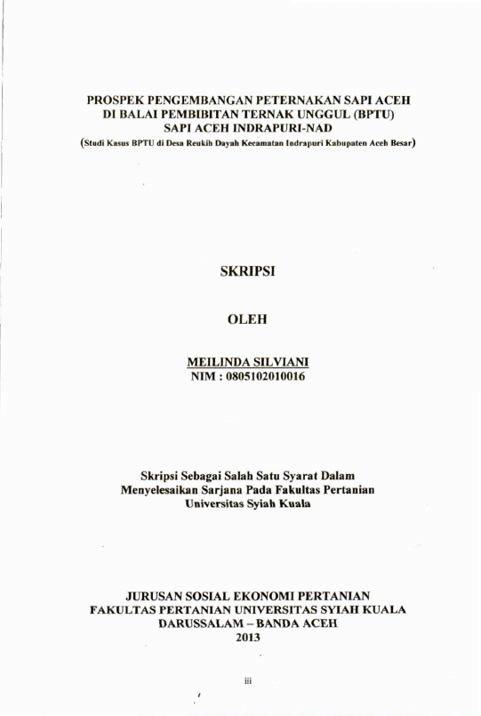 Meilinda Silviani, PROSPEK PENGEMBANGAN PETERNAKAN SAPI ACEH DI BALAI PEMBIBITAN TERNAK UNGGUL (BPTU) SAPI ACEH INDRAPURI-NAD (STUDI KASUS BPTU DI IKSA REUKIH DAYAH KECAMATAN INDRAPURI KABUPATEN ACEH BEAR). Banda Aceh Fakultas Pertanian,2013