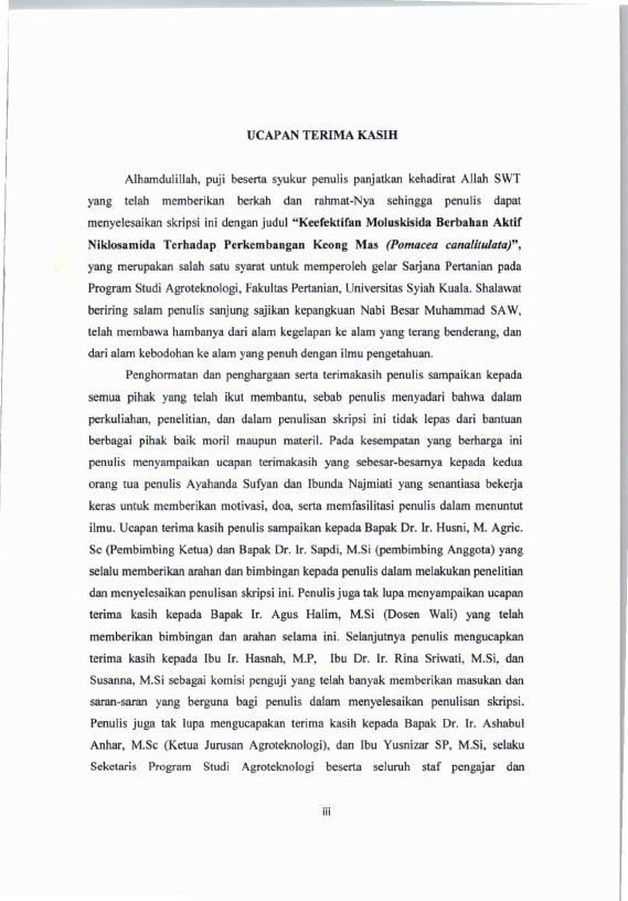 Baca Juga : KEEFEKTIFAN MOLUSKISIDA BERBAHAN AKTIF NIKLOSAMIDA TERHADAP MORTALITAS KEONG MAS ( POMACEA CANALICULATA) (0605103010049, 2024)