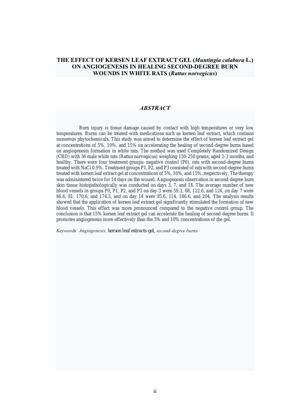 Baca Juga : PENGARUH PEMBERIAN GEL EKSTRAK DAUN KERSEN (MUNTINGIA CALABURA L.) TERHADAP ANGIOGENESIS PADA PENYEMBUHAN LUKA BAKAR DERAJAT II TIKUS PUTIH (RATTUS NORVEGICUS) (ANDRIAN SAPUTRA, 2024)
