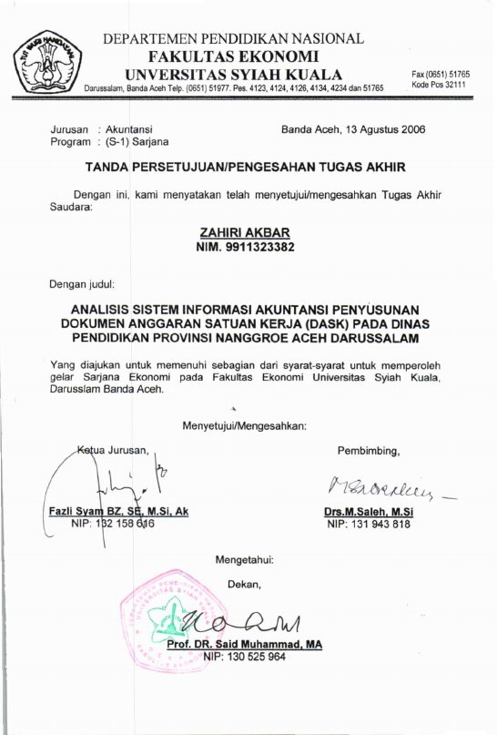 Zahiri Akbar, ANALISIS SISTEM INFORMASI AKUNTANSI PENYUSUNAN DOKUMEN ANGGARAN SATUAN KERJA (DASK) PADA DINAS PENDIDIKAN PROVINSI NANGGROE ACEH DARUSSALAM. Banda Aceh Fakultas Ekonomi Univeristas Syiah Kuala,2006