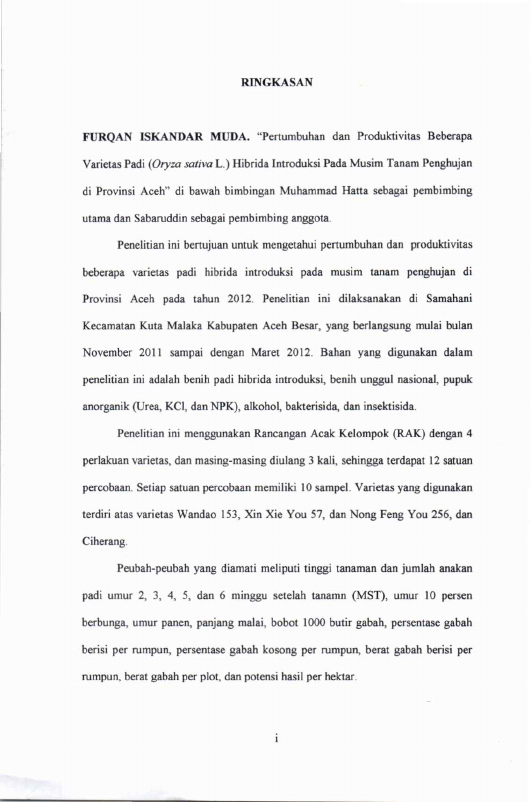 PADI (ORYZA SATIVA L.) INBRIDA INTRODUKSI