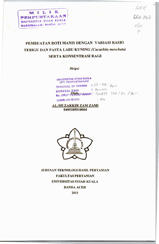 Baca Juga : KARAKTERISTIK FISIKOKIMIA ROTI TAWAR YANG DISUBSTITUSI SEBAGIAN DENGAN PASTA BEKU LABU KUNING (CUCURBITA MOSCHATA) (Nurul Khusna, 2024)