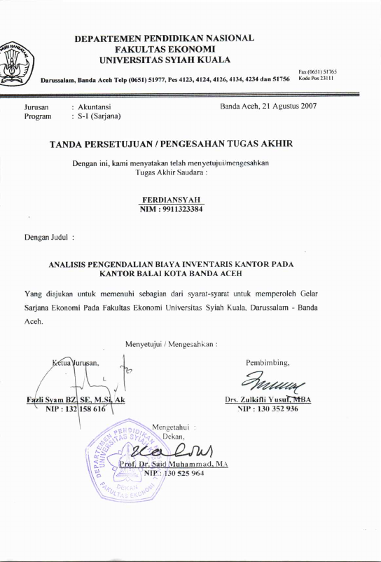 Ferdiansyah, ANALISIS PENGENDALIAN BIAYA INVENTARIS KANTOR PADA KANTOR BALAI KOTA BANDA ACEH. Banda Aceh Fakultas Ekonomi,2007