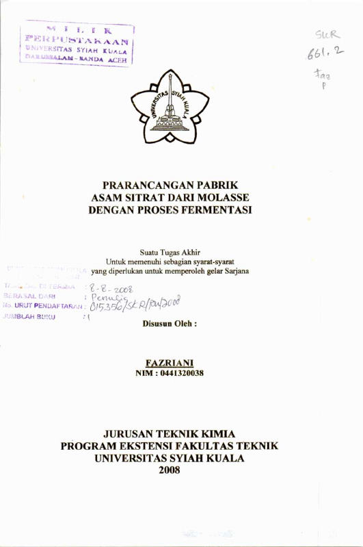Baca Juga : PRARANCANGAN PABRIK ASAM SITRAT DARI MOLASSE DENGAN PROSES FERMENTASI (Diana, 2025)